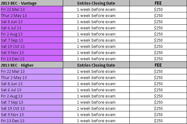 Cambridge ESOL Business (BEC) Exams 2013